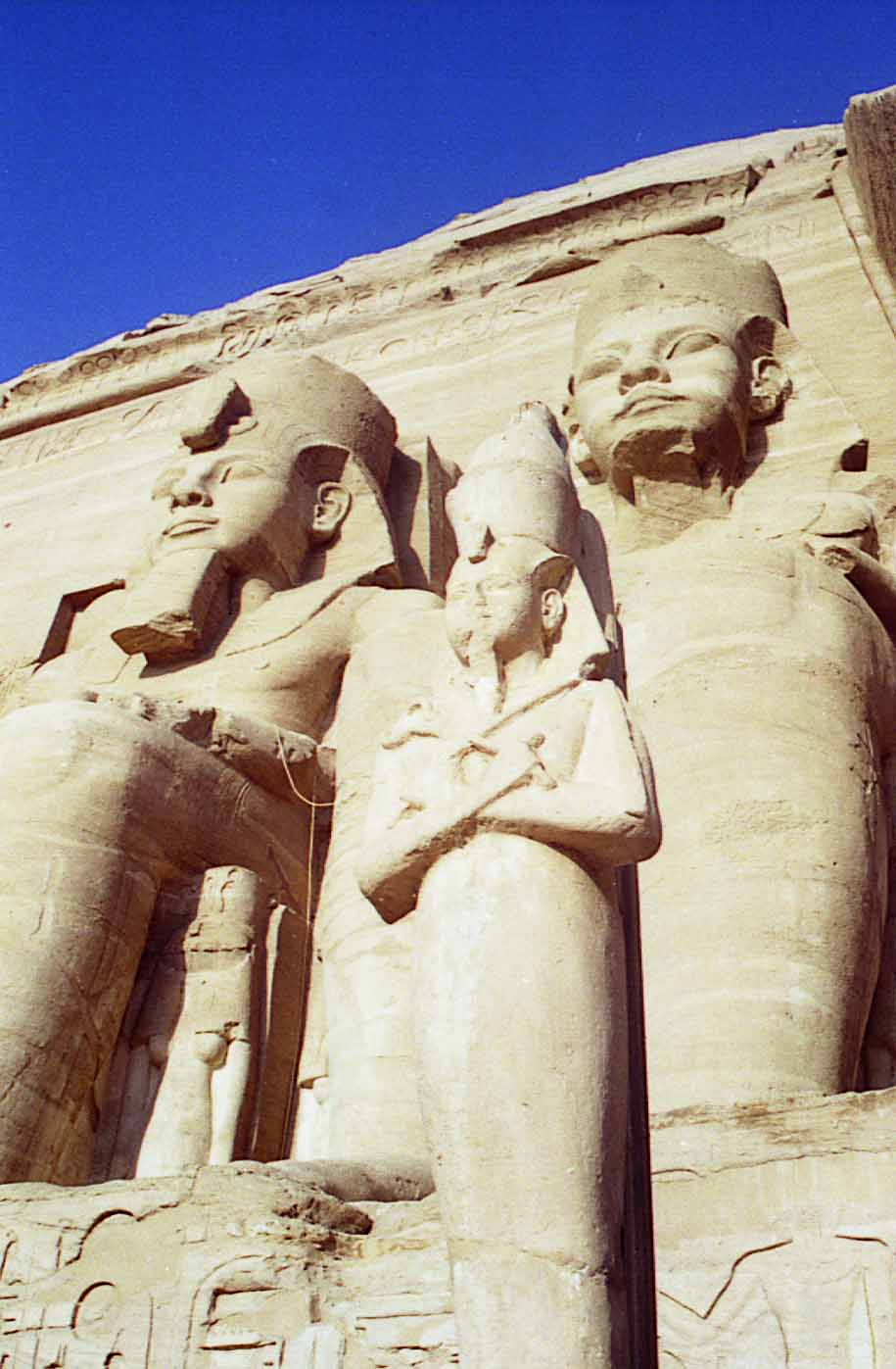 II. Comme toujours, à hauteur du genou du pharaon, se dressent les