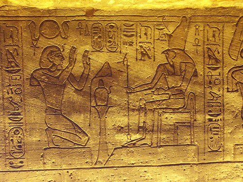 la façade du temple de Ramsès II. En attribuant son invention au dieu