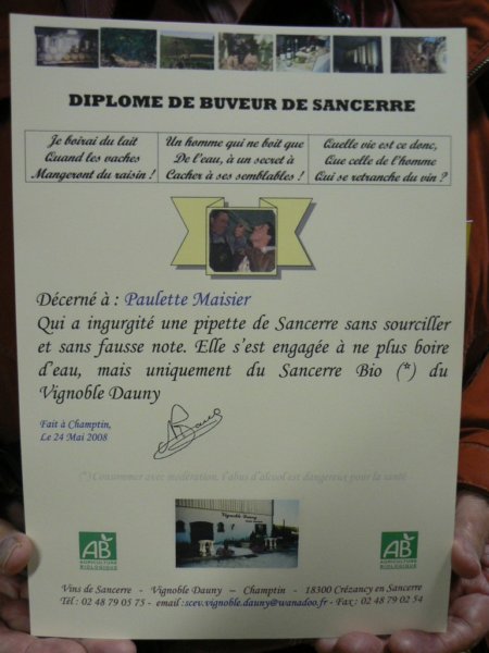 comme étant "le meilleur du Royaume, le vin de Sancerre" et fait éditer