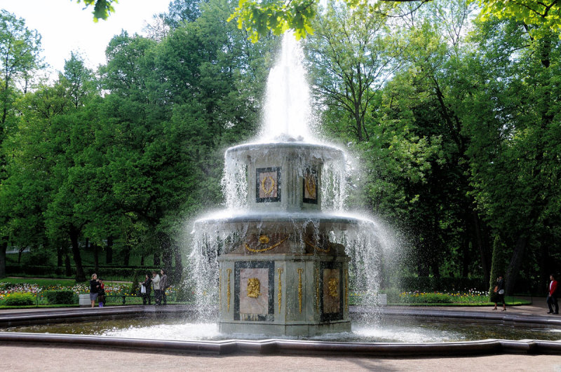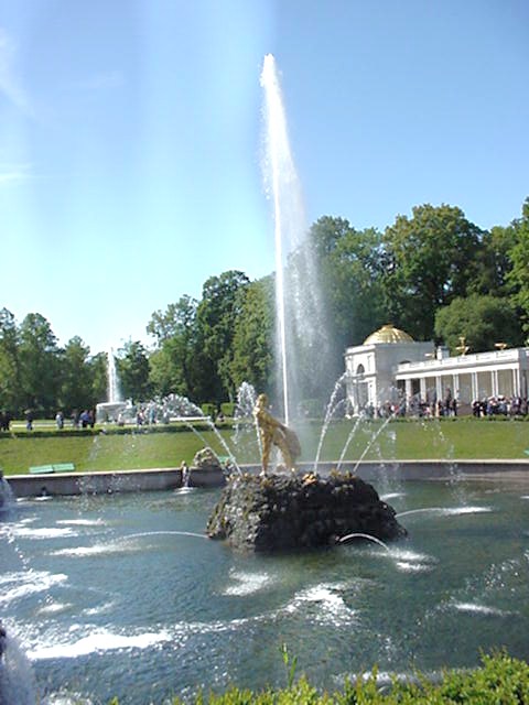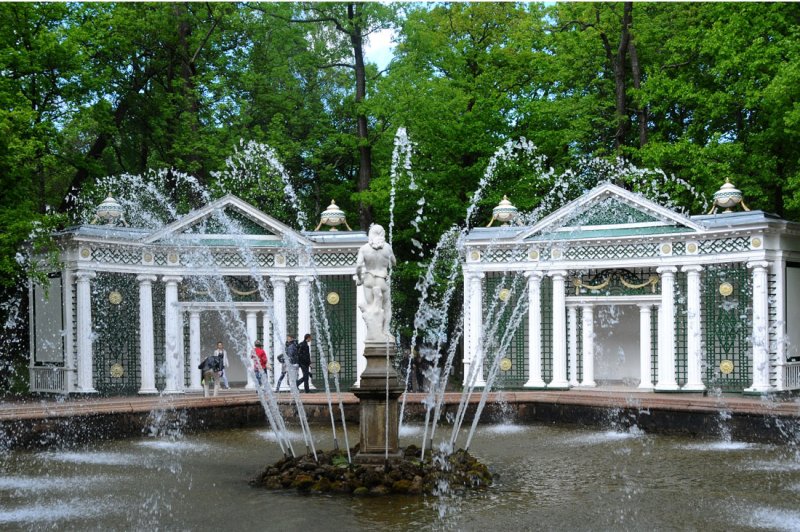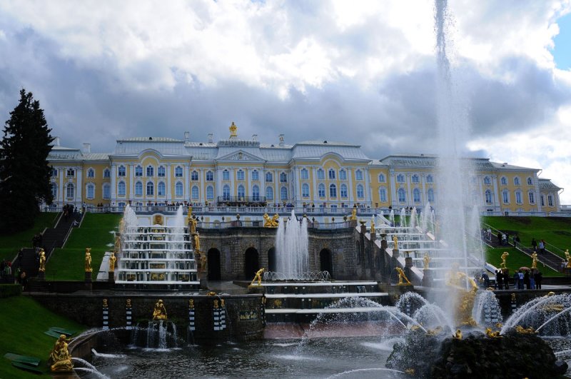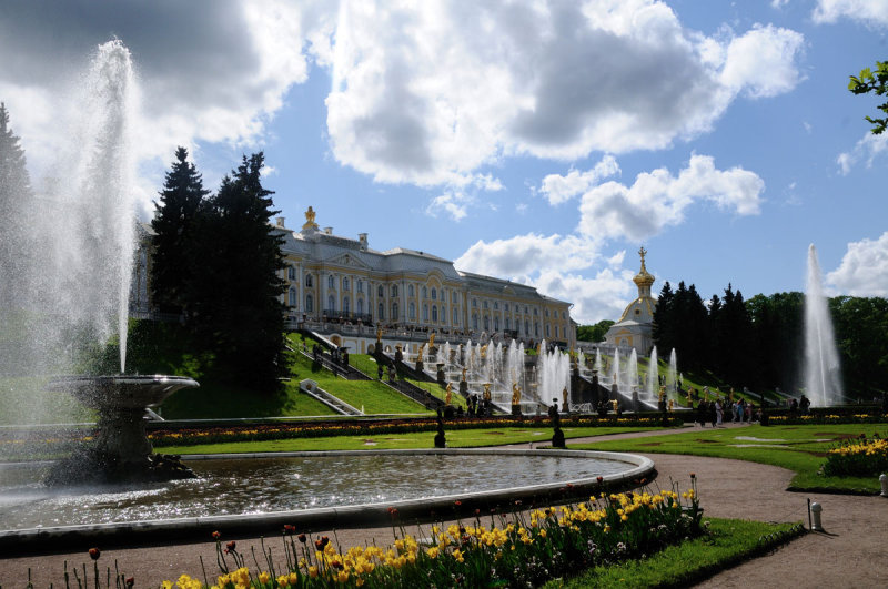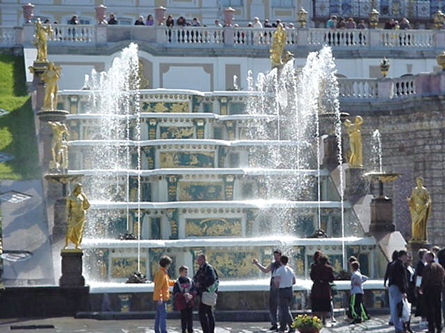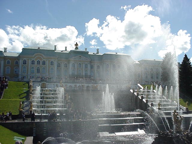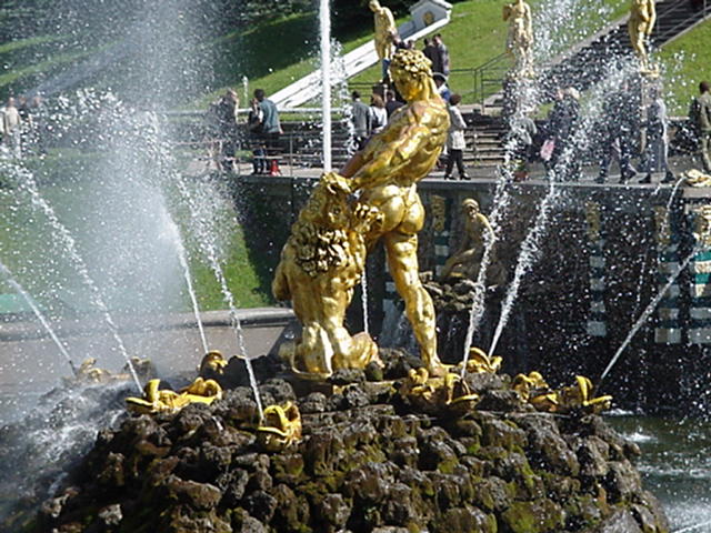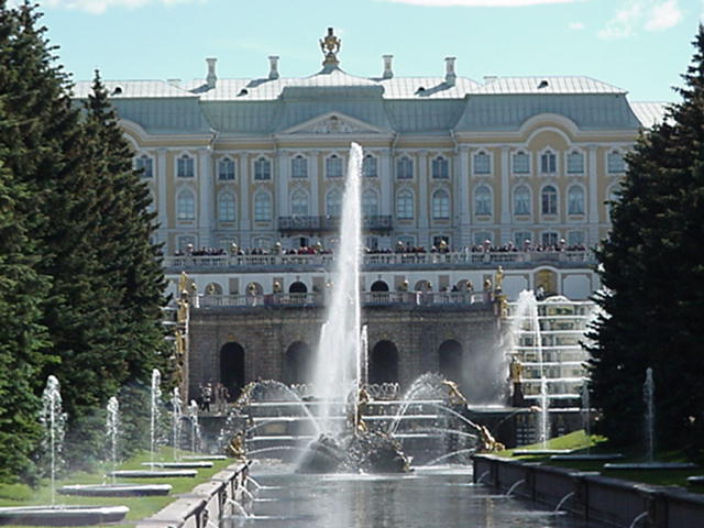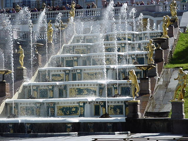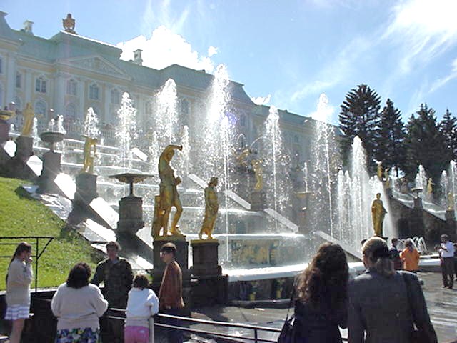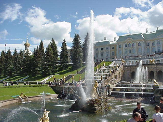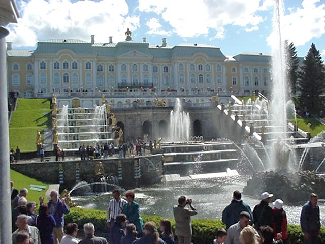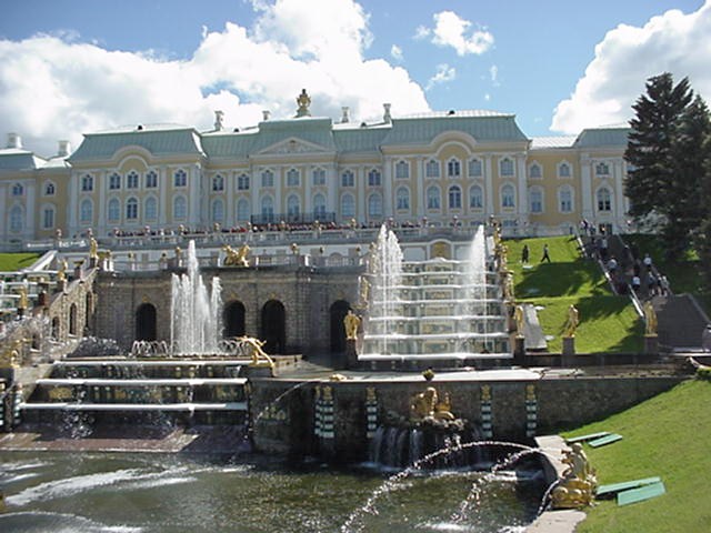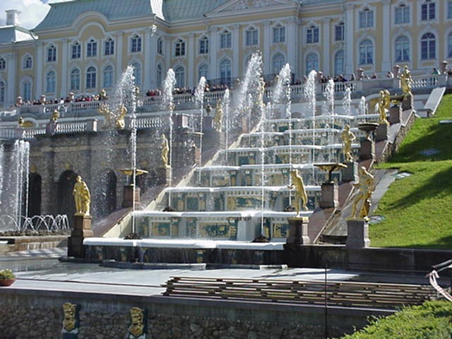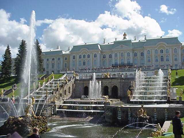 notamment à cause des fontaines et des jardins de Peterhof.